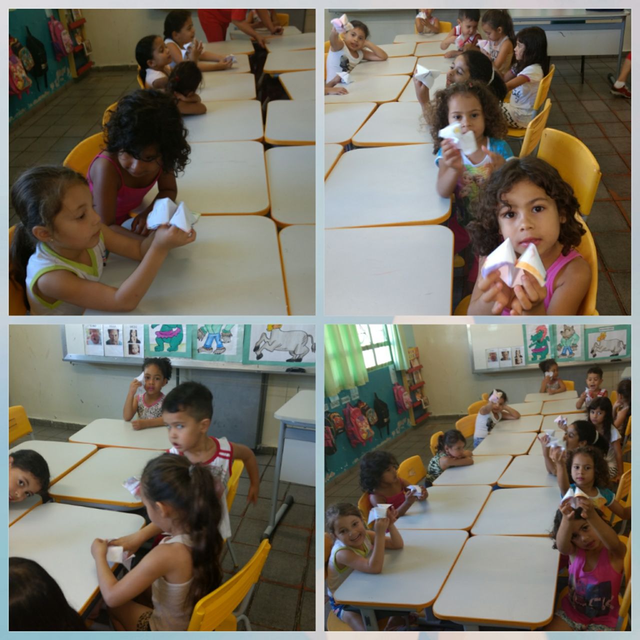 A atividade trabalhada com este origami / dobradura é uma brincadeira que tem por objetivo desenvolver a coordenação motora fina e a estimulação do movimento pinça.